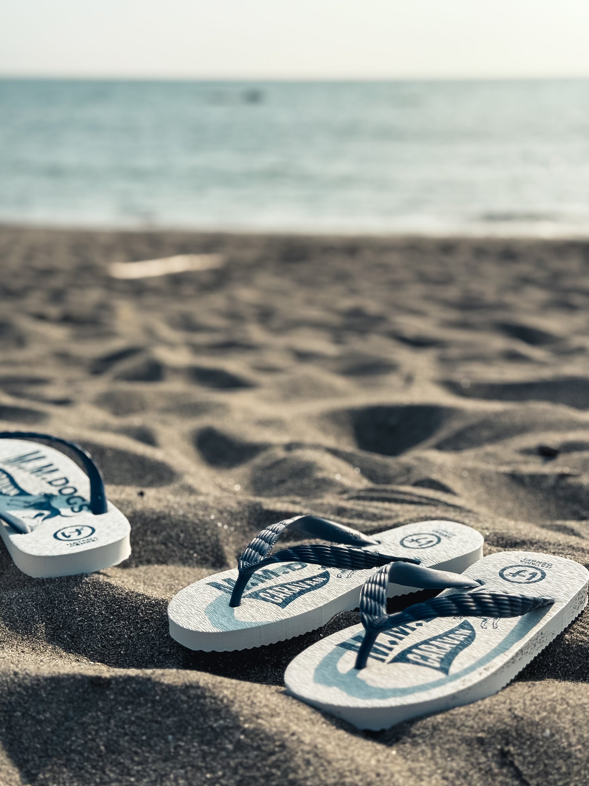 げんべいのビーチサンダルは、履いているうちに鼻緒が伸び、ソールも自重でへこむことで自分の足型に育っていく『育てるビーチサンダル』。