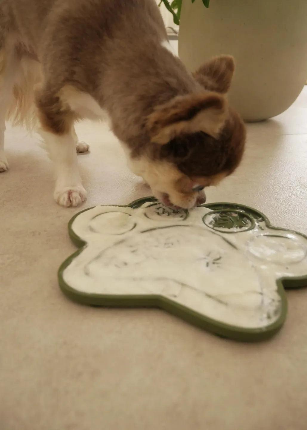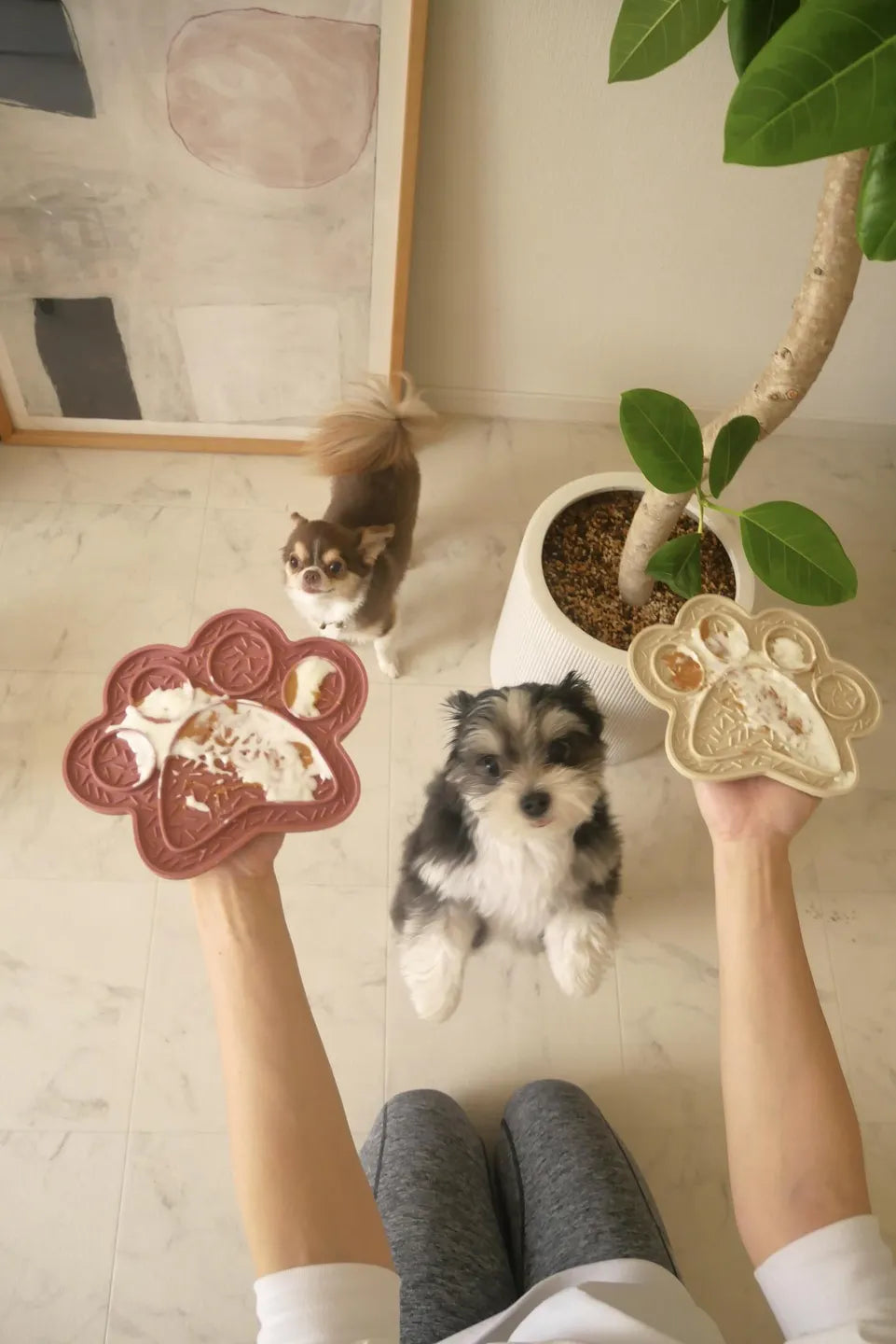 《LICK / 舐める》という行為に注目したマットは、いろんな使い方で日々の生活に寄り添ってくれます。ウェットフードを入れたり、ふりかけを入れたりして、早食い防止に。