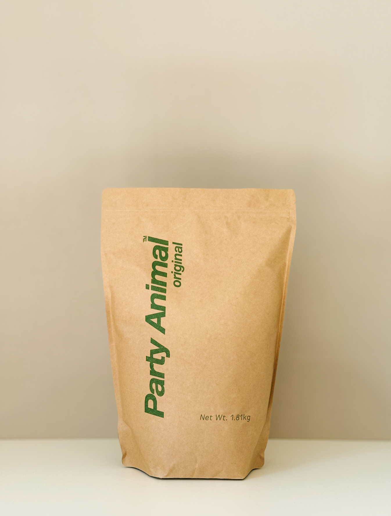 ヒューマングレードの今考えられる最も安全性と美味しさの確保された食材を使用し開発された、パーティアニマル チキン&オーツレシピ。