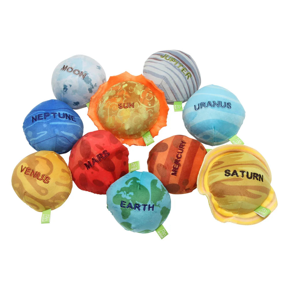 「ループスモル」は、手のひらサイズの小さくて可愛いぬいぐるみ系おもちゃです。「プラネット」シリーズは、正面に星の英語名が刺繍してあり、中にはスクウィーカーが入っています。
